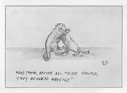 Distraught, the children decide to travel to the city with Chilawee and try to rescue Chikanee. They first travel by canoe through a terrifying forest fire to Rabbit Portage, a frontier town on the railroad. There they are befriended by a missionary, who is presented as a "white brother to the Indians". He takes up a collection among the tourists and residents of the town to raise money for their train tickets. Arriving in the city, they encounter Pat O'Reilly, an Irish policeman, who helps them locate Chikanee and convince the park owner to release the beaver to them. To their great joy, Chilawee and Chikanee were reunited: "And there, before all those people, they began to wrestle."