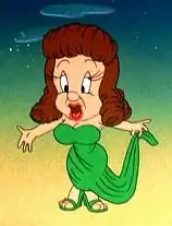 Elmer chases Bugs through a surreal landscape, and Bugs inquires, "What's the matter doc, ya cold? Here, I'll fix dat." Before Elmer can react, Bugs dresses him in drag, (dress, wig, lipstick) transforming the inept hunter into a woman with an hourglass figure who resembles Rita Hayworth. Bugs inspects his handiwork, then lifts the backdrop to reveal a trio of literal wolves in Zoot suits, lounging by the sign at Hollywood and Vine, who catcall at Elmer.