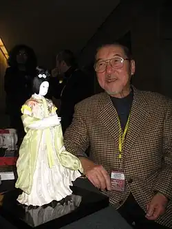 Kihachiro Kawamoto at the 2006 Ottawa International Animation Festival, sitting next to the puppet of the main character from the film.