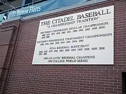 The Citadel Bulldogs baseball team represents The Citadel in college baseball. They are classified as NCAA Division I and play in the Southern Conference. The Bulldogs are led by Russell Triplett, who will begin his first season in 2025.[2] They made their one appearance in the College World Series in 1990. They are the first and through 2022 only military school to appear in the College World Series. The Citadel has claimed eight Southern Conference baseball tournament titles and produced seven major league players.