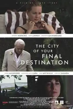 The City of Your Final Destination is a 2009 American romantic drama film directed by James Ivory and starring Anthony Hopkins, Laura Linney, Charlotte Gainsbourg, Omar Metwally, Hiroyuki Sanada and Norma Aleandro. It was written by Ruth Prawer Jhabvala and based on the eponymous novel by Peter Cameron.