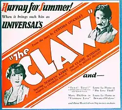The Claw is a 1927 American silent drama film produced by Carl Laemmle and distributed by Universal Pictures. It was directed by Sidney Olcott with Norman Kerry and Claire Windsor in the leading roles.[1][2]