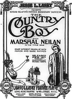 The Country Boy is a lost[1] 1915 American comedy silent film directed by Frederick A. Thomson based upon a play by Edgar Selwyn. The film stars Marshall Neilan, Florence Dagmar, Dorothy Green, Loyola O'Connor, Mrs. Lewis McCord, and Horace B. Carpenter. The film was released on February 18, 1915, by Paramount Pictures.[2][3]