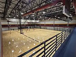 The University Sports Complex also serves as the student recreation center.[8] The facility offers multi-purpose courts used for badminton, basketball, soccer, tennis and volleyball.[1] It also has a racquetball court, a six-lane Olympic-style pool, a suspended track, a weightlifting/conditioning area, a whirlpool, sauna and steam room.[1]