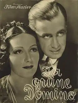 The Green Domino (German: Der grüne Domino) is a 1935 German mystery drama film directed by Herbert Selpin and starring Brigitte Horney, Karl Ludwig Diehl and Theodor Loos.[1] It was shot at the Babelsberg Studios in Berlin and on location in Bavaria around Munich and the Tegernsee. The film's sets were designed by the art directors Otto Hunte and Willy Schiller. It is based on the novel Der Fall Claasen by Erich Ebermayer. A separate French-language version Le Domino vert was also produced, directed by Selpin and Henri Decoin but featuring a different cast.[2]