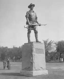 1956 Spanish–American War Memorial Park, East Parkway Street and Central Avenue Memphis Tennessee 35°07′32″N 89°59′07″W / 35.125683°N 89.985220°W / 35.125683; -89.985220 (Memphis, Tennessee) Inscription on plaque affixed to base reads: "The Hiker Typifying the American Volunteer who fought Spain in Cuba, the Philippines, and Boxer Rebellion. Erected in 1956 with funds raised by Spanish War Veterans of Memphis under the leadership of Fred Bauer, Commander."