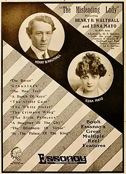 The Misleading Lady is a 1916 American silent comedy-drama film directed by Arthur Berthelet and starring Henry B. Walthall, Edna Mayo and Sidney Ainsworth. It is an adaptation of the play of the same title by Paul Dickey and Charles W. Goddard which was made into films on several occasions.[1] It marked the screen debut of Edward Arnold.