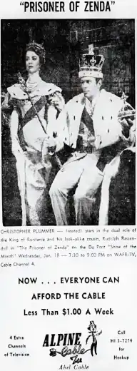 The Prisoner of Zenda is a 1961 American television play based on the novel The Prisoner of Zenda starring Christopher Plummer.[1] Plummer said "We hope to bring more energy and style to our TV adaptation" than the 1937 film version.[2]