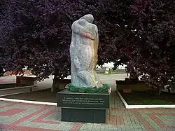 On the base of the monument is an inscription bearing Soviet-style rhetoric,[3] stating it is "In memory of the victims of the Soviet people who died at the hands of the fascist accomplices – members of the Organization of Ukrainian Nationalists and Ukrainian Insurgent Army.”[4] The base of the monument has been repeatedly vandalized.[5]