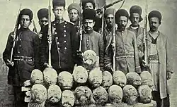 Najmabadi presents the event as an example of one of the many acts by both the provincial governments and the national Qajar Regime which led to the Constitutional Revolution.[2] In the province of Quchan, the provincial governor, Asaf al-Dawlah, set a flat tax for all citizens, regardless of their income. The poor could not afford to pay this tax, due to a bad harvest, and the only way they could raise the money was to sell their daughters to the elite Turkmen or to nomads. Turkmen also began raiding the village and capturing the women. When the citizens begged for payment postponement, they were shot and killed by provincial government officials.