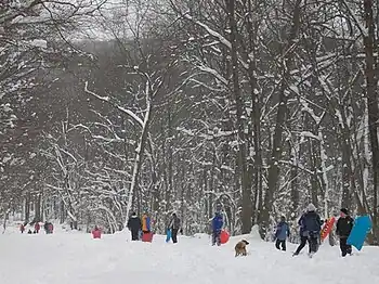 People enjoying sledding at the Tourne in Winter 2006.