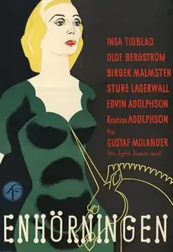 The Unicorn (Swedish: Enhörningen) is a 1955 Swedish drama film directed by Gustaf Molander and starring Inga Tidblad, Birger Malmsten and Edvin Adolphson.[1] It was shot at the Råsunda Studios in Stockholm. The film's sets were designed by the art director P.A. Lundgren.