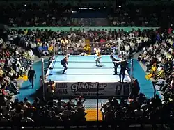 This chapter looks at the perspectives of lucha libre as both an athletic sport and as a spectacle of good vs. evil, or tecnicos (good guys) vs. rudos (bad guys).[2] Levi addresses that lucha libre is a complex cultural performance consisting of three levels: the life world, the performance, and the played out "socially marked characters."[3] The chapter proceeds to discuss the life of lucha libre within the context of the body and self-representation of a luchador/a. The aspects of the performance involve play-roles that range from socially marked characters to animals (e.g. jaguars) and elemental forces (Tinieblas or Darkness), but also mass media cultural images, such as El Zorro.[3]