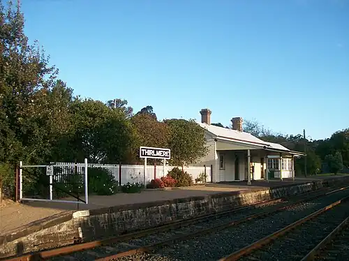 Thirlmere railway station is a heritage railway station located on the Picton–Mittagong loop railway line, serving the town of Thirlmere in the Macarthur Region, New South Wales, Australia.