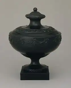 Wedgwood & Bentley black basalt stoneware vase with encaustic ornament, c. 1770–1780, Los Angeles County Museum of Art.
