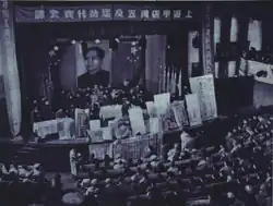 The Three-Anti and Five-Anti Campaigns significantly reshaped China's class structure by targeting the bourgeois, capitalist ideologies and essentially of western capitalism. These campaigns included a "thought-reform movement" aimed at students, intellectuals, artists, and professionals to eliminate "bourgeois ideas" and promote "proletarian ideology” or more communist/collectivist ways of thinking.[10] Schools and colleges became battlegrounds for these ideological purges, forcing intellectuals to publicly confess and renounce their free market and western believes that aligned with capitalist values. This resulted in a significant change in the class composition of the government and Party membership. Workers with demonstrated support for Mao's communist ideology were promoted to executive and managerial roles in factories and industries, with diminishing importance on their qualifications and literacy rate. In fact standards of membership qualification were reduced to join the Chinese Communist Party.[11] The recruitment and advancement of cadres prioritized those of working-class origin, thereby reinforcing the proletarian nature of the Party and the new Chinese state.