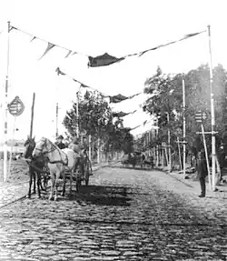 Horse-drawn tram tracks on Andrássy út (now Bulevardul 3 August 1919); in the foreground, the bridge over the mill canal, drained in 1909; in the background, Piaţa Romanilor