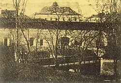 Horse tramway culvert at the Siebenbürger Gate with a wooden bridge over the moat, with the former Mocioni Palace in the background