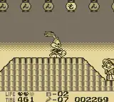 There are five stages, with the first four being different films that Montana's showing, and the final stage is being held in the backlots of Montana's movie studio. Buster simply has to go through the stages before the time runs out. Collecting carrots along the way earns Buster extra lives and bonus points. By the end of a stage, Buster confronts Max as a boss. Defeating him, requires Buster to stomp on him five times. In between stages, Buster can participate in a bonus sports game against one of his friends or rivals.