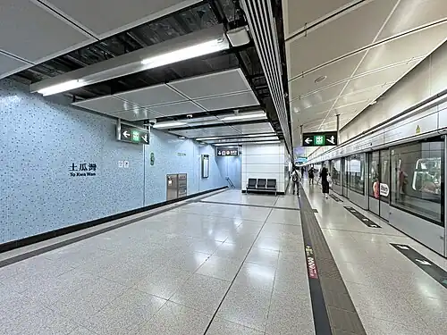 To Kwa Wan (Chinese: 土瓜灣) is an underground MTR rapid transit station on the Tuen Ma line in Hong Kong. It is located beneath Ma Tau Wai Road in central To Kwa Wan, Kowloon City District. The station was built as part of the Sha Tin to Central Link (SCL) project, and was opened on 27 June 2021[2] along with the rest of phase 2 of the Tuen Ma line (Kai TakHung Hom).