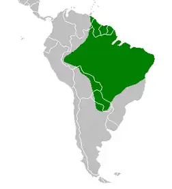 Toucans have natural predators such as forest eagles, hawks, and owls. The birds must also defend themselves from boas, jaguars and margays who sometimes invade toucan nests.[9] To protect themselves, toucans rely heavily on their loud voices that aim to scare off enemies and alert other toucans to the threat of danger.[9] In addition, toucans will strike their bill against a tree or branch as a defensive display of strength. The toucan bill can withstand such compressive strikes against branches due to its previously described structure. Other defensive acts include toucans consuming small baby birds or eggs of other birds. The extreme size of the toucan's bill provides defensive assistance since smaller birds are frightened by both the size and bright colors of the bill. The toucan's beak and its strength, however, are only useful in defense while perched; other birds typically only attack a toucan while it is in flight since the bird cannot defend itself with its beak while flying.