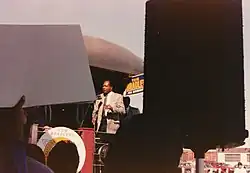 Tom Bradley speaking at AIDS Walk LA at the Paramount Studios lot in 1988.