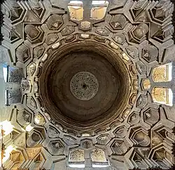 The epigraphic medallion in the apex of the dome has arabesque borders and, in the center, a 12-pointed star with medallions.[13]