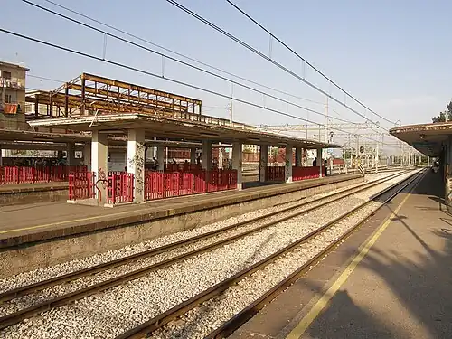 The station experiences a high volume of passenger traffic throughout the day and is one of the busiest along the line, due to its strategic location at the junction between Poggiomarino and Sorrento. All categories of trains stop here: direttissimi bound for Napoli Porta Nolana arrive on track 1, while direttissimi to Sorrento use track 2; accelerati heading to Napoli Porta Nolana stop or depart from track 3, while track 4 is used by accelerati to Poggiomarino. Track 5 is used by some accelerati to or from Napoli Porta Nolana that terminate or originate at this station.[3]