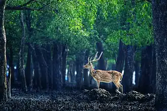 A deer in the Sundarbans, The largest mangrove forest in the world and a UNESCO World Heritage Site.
