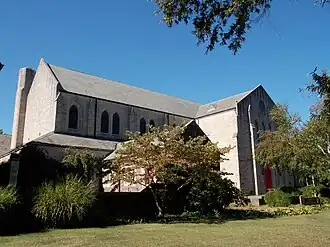 It was at a meeting of the Foundation on April 24, 1930 that Bishop Matthews mentioned a plan to make Trinity Church in Trenton the diocesan cathedral. The vestry at Trinity approved of the idea and Christ Church, which was only a cathedral in a limited sense, was not opposed. The necessary resolutions were passed by all the entities involved throughout 1930 and on November 1, 1930 Trinity Church officially became Trinity Cathedral.[2] On November 20, 1930 Trinity and All Saints Church agreed to merge. The merger permitted the diocese to acquire land around the All Saints location for the location of the new cathedral. The Trinity property did not allow for this possibility.[1] On January 25, 1931 Bishop Matthews was enthroned in Trinity Cathedral. The Rev. Ralph E. Urban was installed as the Cathedral Dean and the Rev. Hamilton Schuyler as Honorary Canon on February 23 of the same year. The Standing Committee gave its consent to Trinity Church to change its corporate name to Trinity Cathedral on March 16, 1931.[1] The crypt of the present cathedral church was begun in 1935 and completed a year later. The cathedral itself was dedicated on January 24, 1954,[2] and consecrated in 1965. In subsequent years the cathedral has become a parish church.[3]