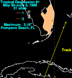 - ^ a b c David M. Roth (2008-08-04). "Tropical Depression #1 - May 30-June 2, 1988". Hydrometeorological Prediction Center. Retrieved 2011-03-10.