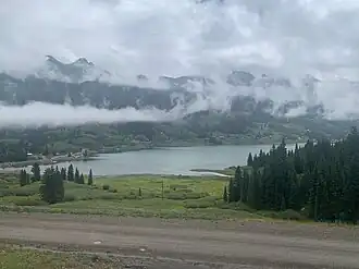 Starting in 1891, Trout Lake was used as a watering station for the Rio Grande Southern Railroad (RGS), which used the water from the lake to fill its steam engines. There were 15 similar stations used by the RGS, all of which were serviced by a large force of men called "water service" who maintained the water tanks.[21] While the railroad is no longer in operation, the 50,000 gallon wood watering tank (one of only two left) and a nearby railroad trestle remain.[22][23][24][25]