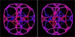 Two Schlegel diagrams, centered on truncated tetrahedral or truncated octahedral cells, with alternate cell types hidden.