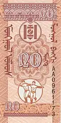 20 möngö | 45 × 90 mm | Yellow-brown | Soyombo, Wrestling | Wrestling | |||