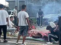 People doing butcheries for making Tuotuorou in Puxiong, Sichuan
