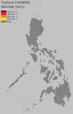 - ^ Final Report re Preparedness Measures and Effects of Typhoon "Chedeng" (Maysak) (PDF) (Report). National Disaster Risk Reduction and Management Council. April 7, 2015. Retrieved April 7, 2015.