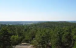 The terrain is typical for the region, low hills and valleys formed by the last ice age. The highest point is at Telegrafberget, 84 metres (276 feet) above sea level.