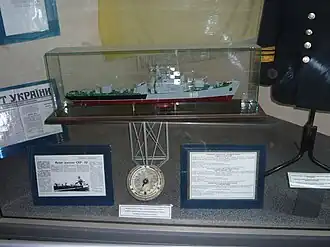 After the declaration of independence of Ukraine, it became the first warship that raised the Ukrainian flag and on July 21, 1992 made an unsanctioned move to Odesa.[1] The initiator of the move was frigate captain Mykola Zhybarev.[1]