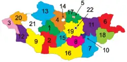 57. ^ "Mongolia: Provinces, Cities & Urban Settlements".