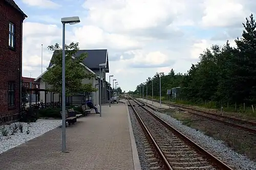 The station opened on 31 March 1875 as the section from Holstebro to Ringkøbing of the new Esbjerg–Struer railway line opened.[2] Later the same year, on 8 August, the section from Varde to Ringkøbing also opened, and the West Jutland longitudinal railway line was thus completed.[2]