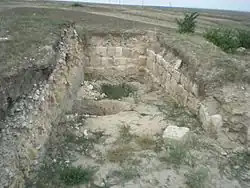 After a period of abandonment due to the Hunnic attacks[2] between the last quarter of the 5th century and the middle of the 6th century, it was partially rebuilt.[3]