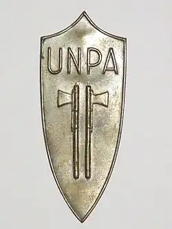 In 1941 UNPA was transferred under the control of the Ministry of the Interior; after the Armistice of Cassibile in September 1943, it remained active in the Italian Social Republic. The organisation was finally dissolved on 6 March 1946.[13][14][15]