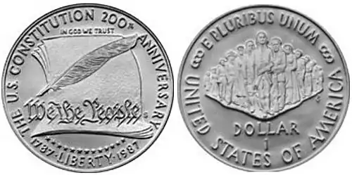 The Bicentennial of the Constitution Coins and Medals Act (Pub. L. 99–582) authorized the production of two coins, a silver dollar and a gold half eagle, to commemorate the bicentennial of the signing of the US Constitution. The act allowed the coins to be struck in both proof and uncirculated finishes.[1]
