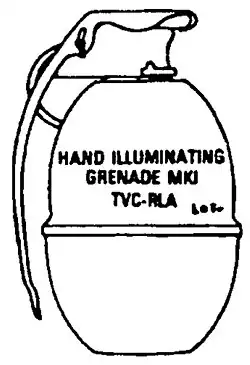 An illumination grenade, with a magnesium filler ignited by a wick type fuze, the Mk 1 Mod 0 was first produced during the Second World War. The Mod 1 probably featured an improved type fuze, moving away from the simple wick lighter design. The Mod 2 featured a simplified overall design, while the Mod 3 replaced the single-piece steel body with a two-piece plastic shell.[25][26]