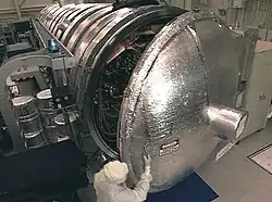 NASA's Space Power Facility houses the world's largest vacuum chamber. It was built in 1969 and stands 122 feet (37 m) high and 100 feet (30 m) in diameter, enclosing a bullet-shaped space. It was originally commissioned for nuclear-electric power studies under vacuum conditions, but was later decommissioned. Recently, it was recommissioned for use in testing spacecraft propulsion systems. Recent uses include testing the airbag landing systems for the Mars Pathfinder and the Mars Exploration Rovers, Spirit and Opportunity, under simulated Mars atmospheric conditions.