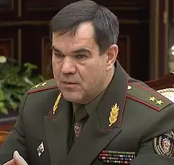 Valery Pavlovich Vakulchik (Belarusian: Валерый Паўлавіч Вакульчык, Russian: Валерий Павлович Вакульчик, born 19 June 1964) is a Belarusian civil servant and soldier. He was the Chairman of State Security Committee of the Republic of Belarus (KGB, SSCRB) from November 16, 2012, to September 3, 2020. Vakulchik was also Secretary of the State Security Council of the Republic of Belarus from September 3, 2020, to October 29, 2020.
