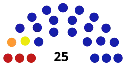 The newly formed Council of Deputies includes 25 persons, with 12 of them elected in twelve single-mandate constituencies, while 13 are elected in a single electoral district.[20] Among other things, the Council approves the local budget, manages state property, can establish and cancel local taxes and fees, assigns names to streets, and maintains the road network in the territory allocated to it.[21] It also has the right to create museums, higher educational institutions and create the necessary conditions for the national and cultural autonomies of the district.[22]