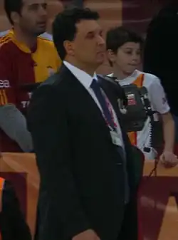 He then became the head coach of Efes in December 2013,[4] and then worked as an assistant with Efes. He became the head coach of the Greek club Promitheas Patras in December 2016.[5] He became Aris' head coach again, in 2018.