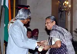 Vasundhara Komkali (1931–2015), popularly known as Vasundhara Tai, was an Indian classical musician and one of the leading exponents of the Gwalior gharana, an old Khyal tradition of Hindustani music. She was the wife of renowned musician, Kumar Gandharva,[1] and was a recipient of the 2009 Sangeet Natak Akademi Award.[2] The Government of India awarded her the fourth highest civilian honour of the Padma Shri, in 2006, for her contributions to Indian classical music.[3]