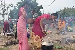Devotees cooking Pongal on the premises of the Vatrappalai Temple.